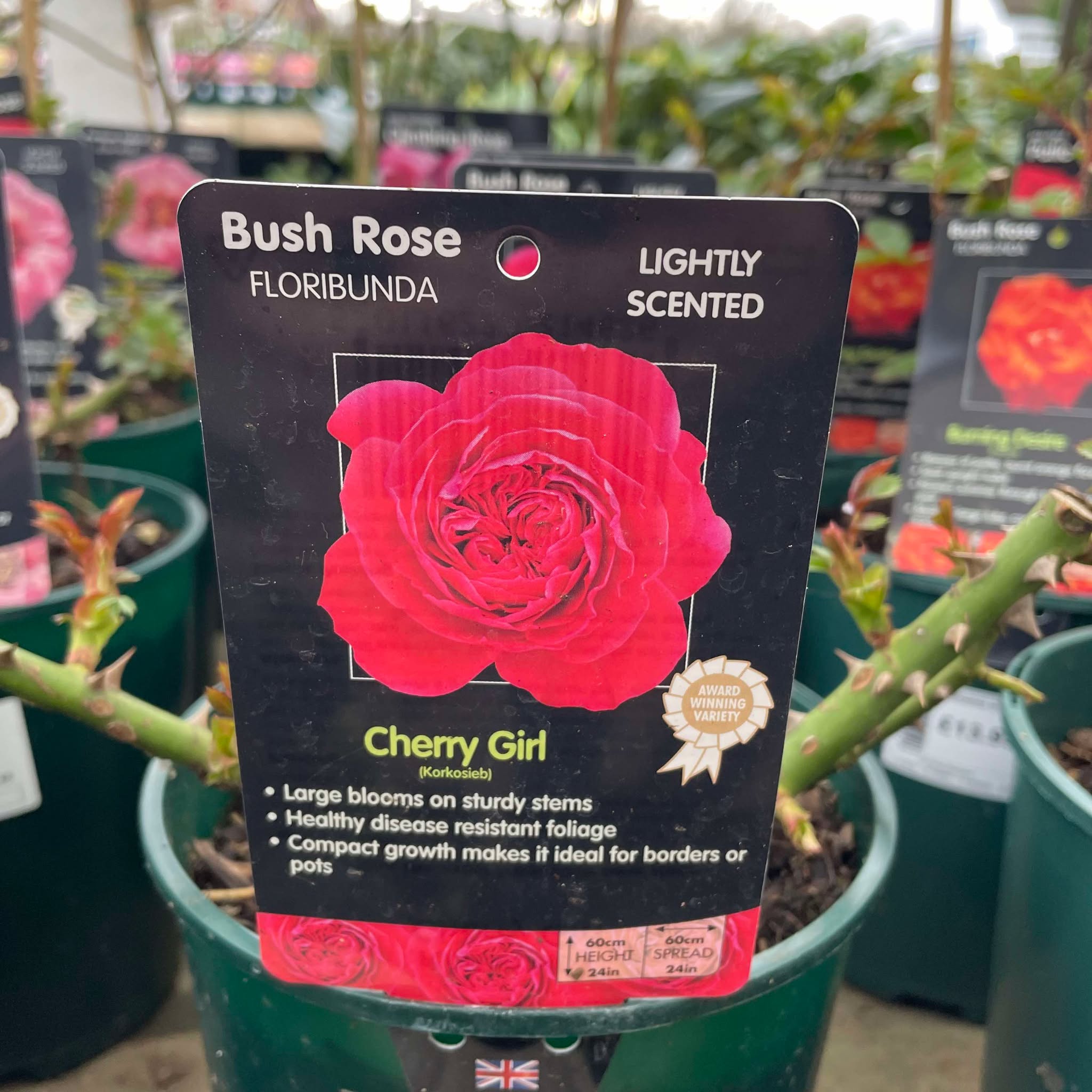 Bush Rose Floribunda Cherry Girl. Lightly Scented