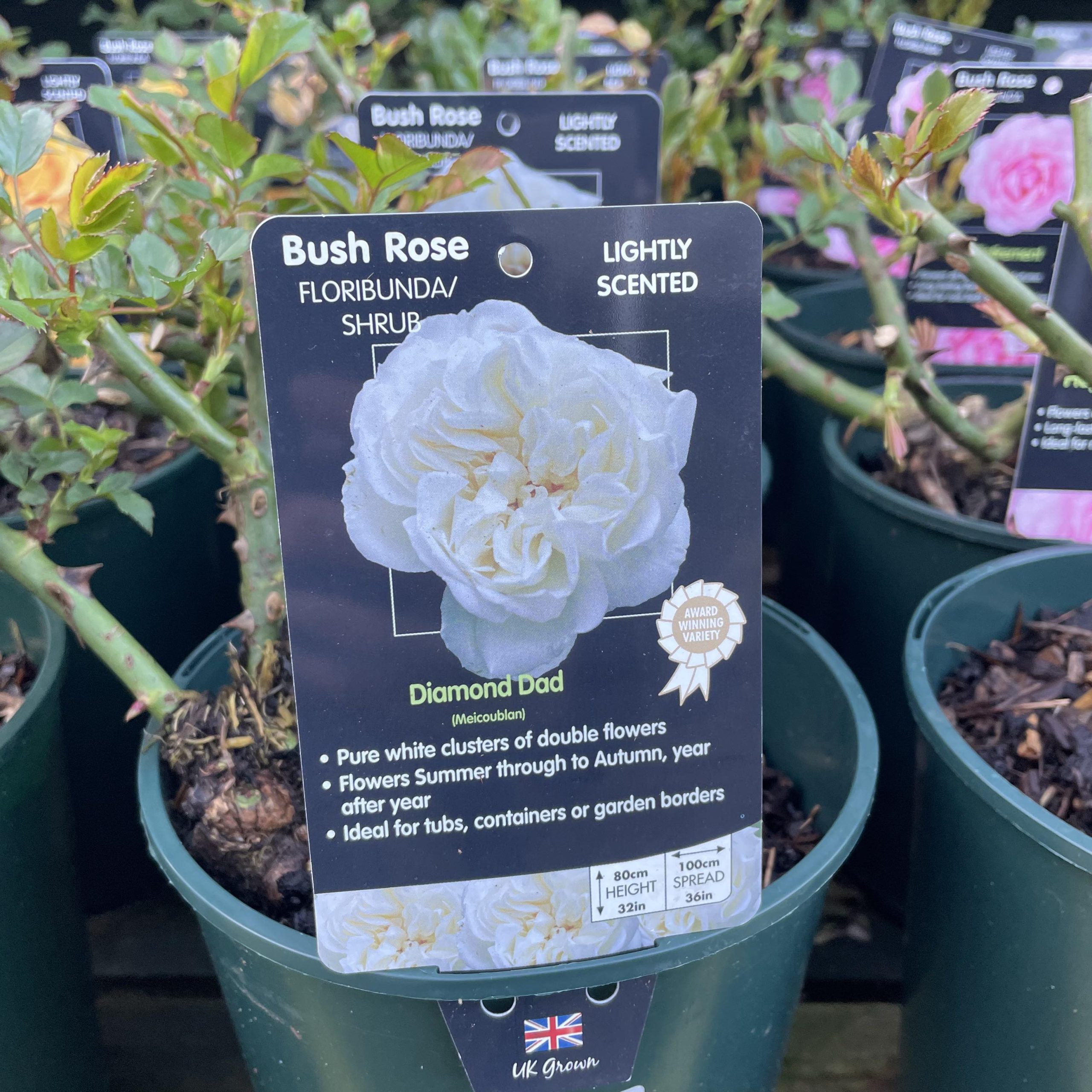 Silver Anniversary Pure White. Premium Bush Rose 3ltr