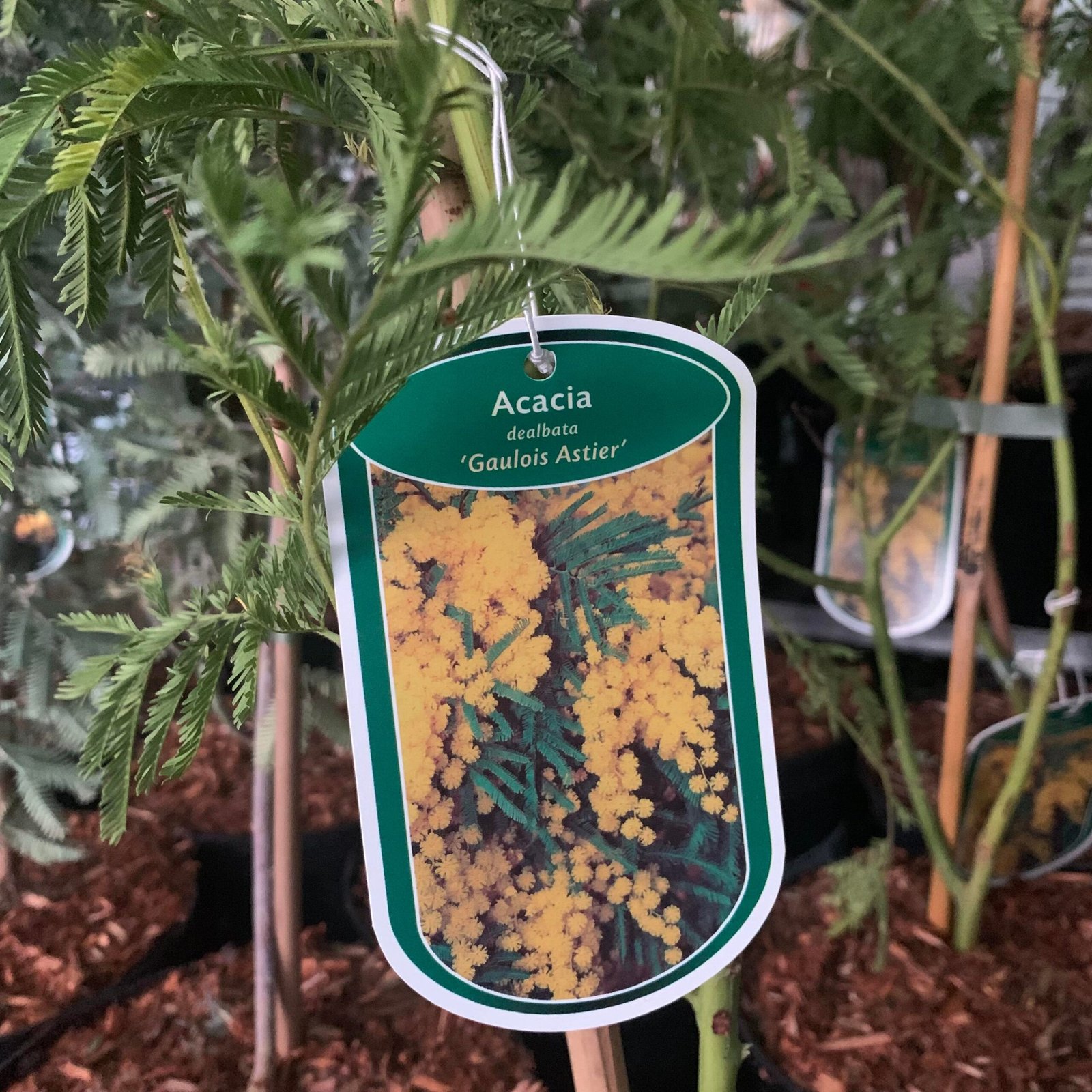 ‘Gaulois Astier’ is an evergreen shrub, to 6m tall, with finely-divided, silvery-grey, fern-like foliage and clusters of fragrant yellow flowers freely-borne in winter and spring