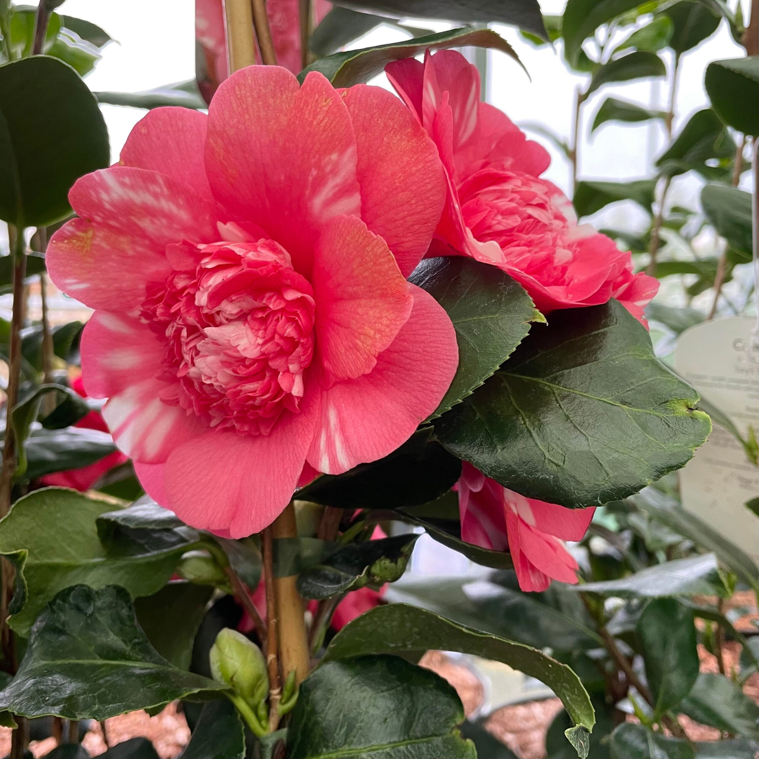 ‘Elegans’ is a vigorous medium-sized shrub of spreading habit, with deep pink, anemone-centred double flowers to 10cm in width.