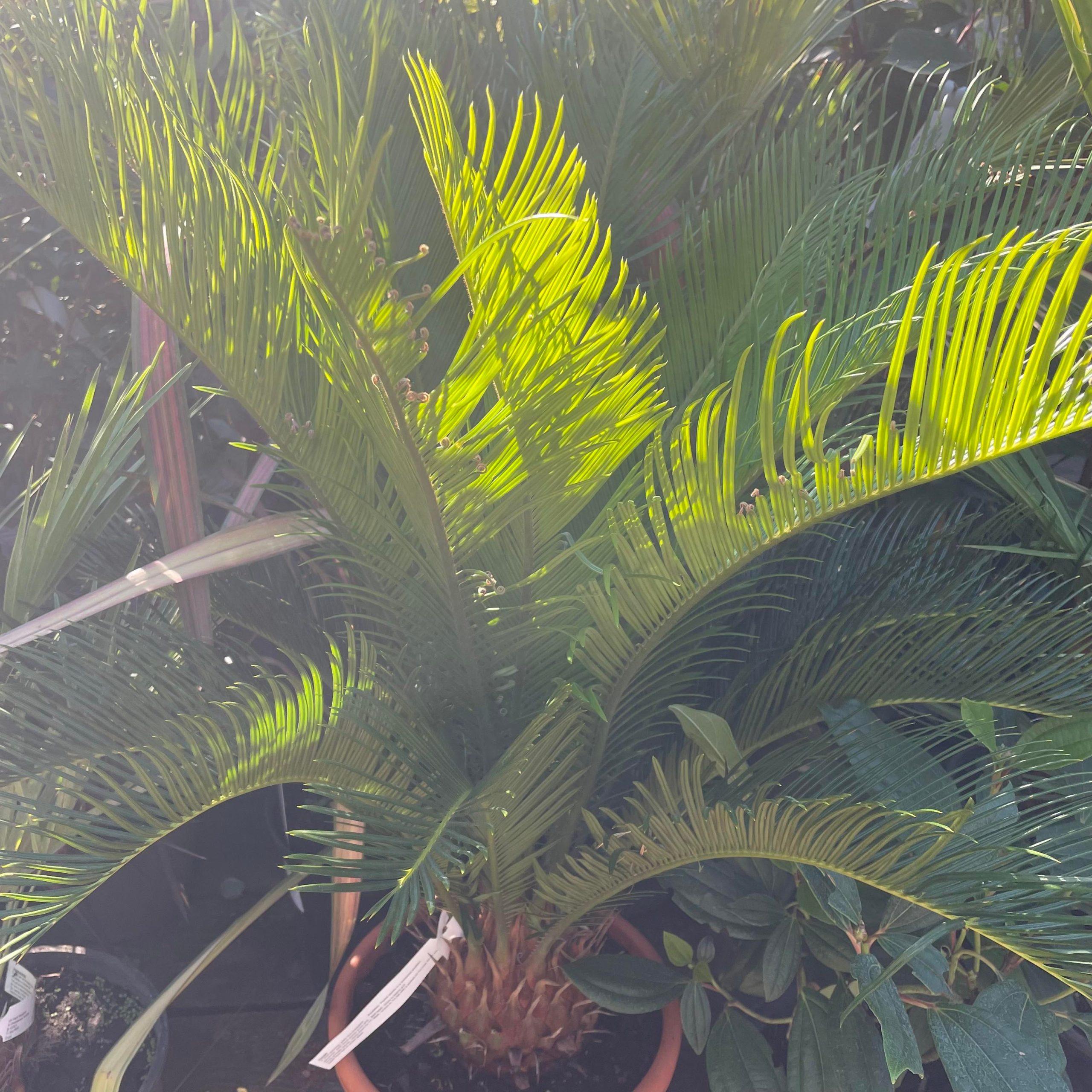 A slow-growing, palm-like evergreen perennial to 2m, with arching pinnate leaves to 1.5m in length, and golden-brown, ovoid inflorescences which are rarely seen except on mature plants.