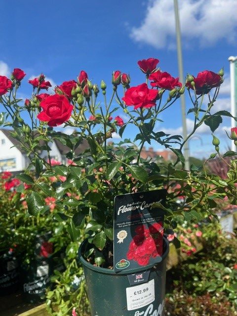 Rosa Flower Carpet Red Velvet (‘Noare’) produces a profusion of small red flowers that repeat well from June onwards. Flower Carpet Roses are known for their long lasting flowers, disease resistance, winter hardiness and easy to grow nature.