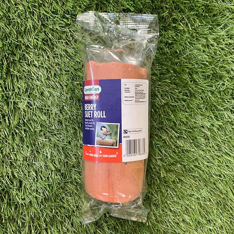 Gardman high energy berry suet roll attracts coal tits, blue tits great tits, song thrushes and other species.