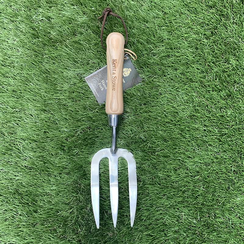 Kent & Stowe hand fork is a stainless steel hand fork its handle is made of ash wood and has a 15 year guarantee,