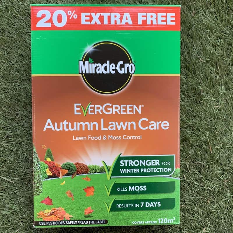 Miracle Gro Evergreen Autumn Lawn Care lawn food and moss control.
