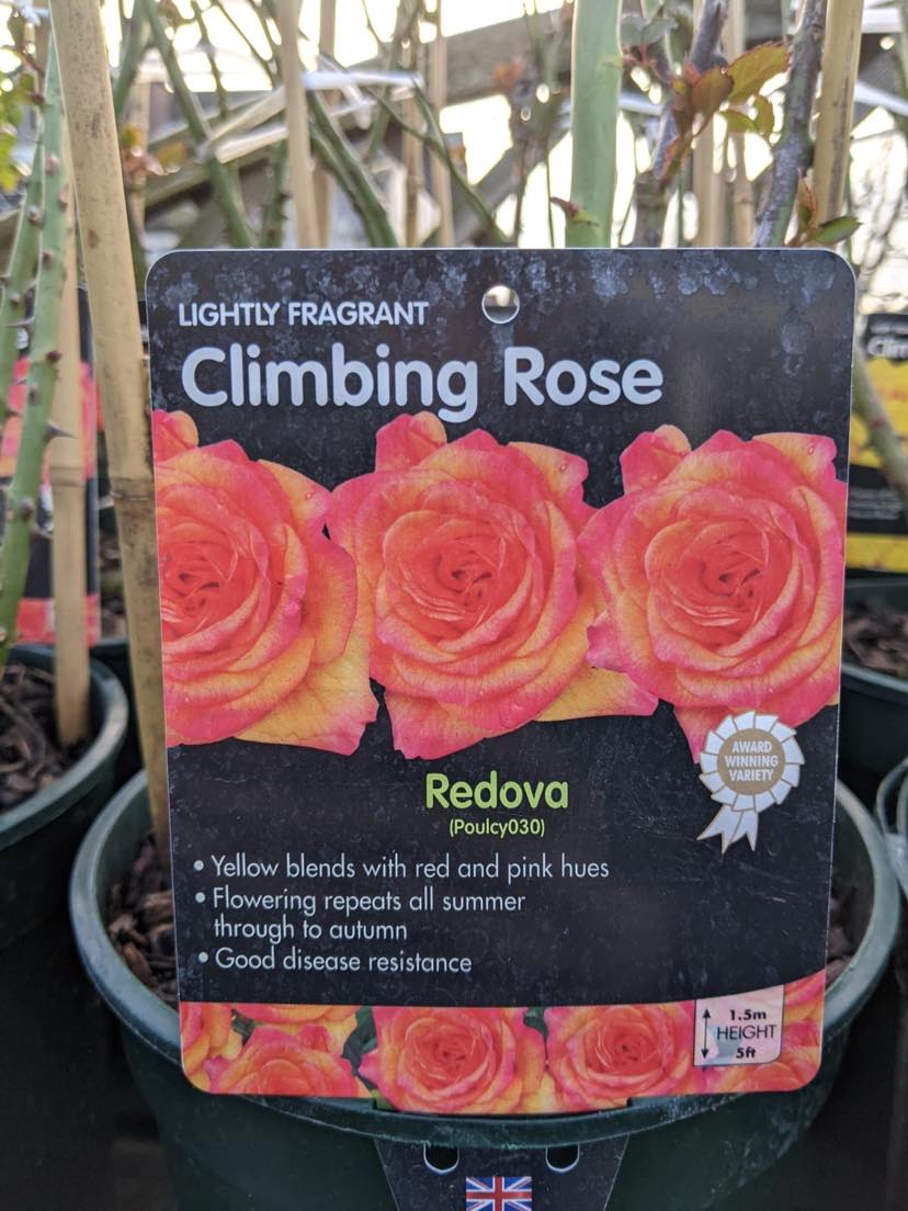 Lightly scented shorter climbing rose with sprays of double yellow blooms, that aquire a pinky red flush as the flower ages. Good for patio pots