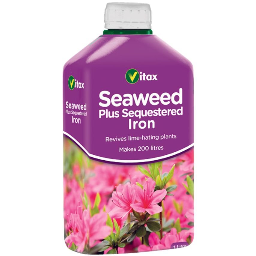 Vitax Seaweed Plus Sequestered Iron 500ml Revives lime hating plants Helps plants develop healthy foliage and intense flower colour, correcting iron deficiency and preventing yellowing of leaves, especially in lime hating plants. Can also be applied 2 or 3 times a year to lawns to ‘green up’ and toughen turf without encouraging excessive growth Apply: In spring and throughout growing success Available pack sizes: 500ml.